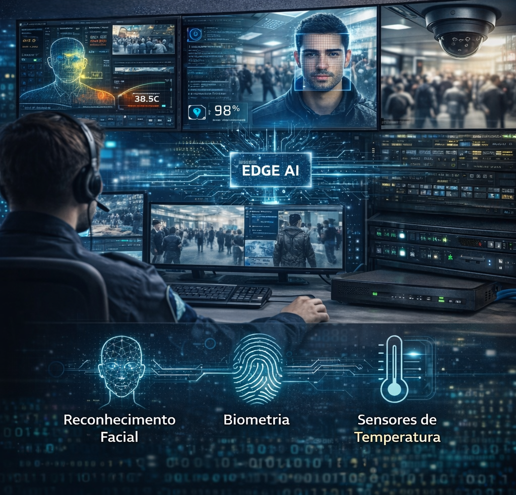 Em um cenário de riscos híbridos, os sistemas de monitoramento inteligente tornam-se fundamentais para a antecipação de incidentes e a otimização das operações. Nossas soluções integram inteligência analítica de borda (Edge AI), possibilitando o processamento em tempo real de reconhecimento facial, biometria e sensores de temperatura. Dessa forma, protegemos ambientes complexos com tecnologias que não apenas registram eventos, mas interpretam dados e reagem de forma imediata às ameaças.