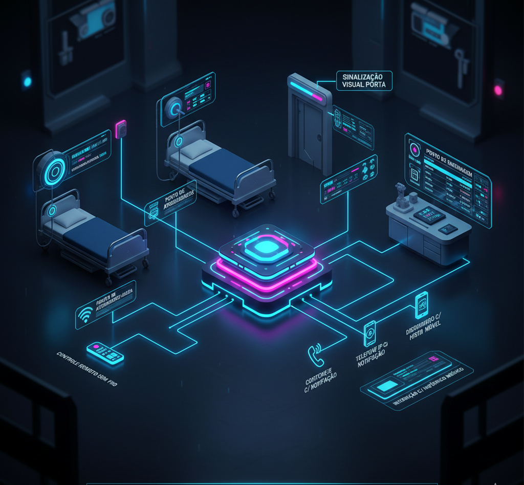 Soluções avançadas para leitos hospitalares, integradas a sistemas de enfermagem, com foco na otimização do conforto, da segurança dos pacientes e da eficiência assistencial. Por meio de tecnologias de última geração, os leitos são desenvolvidos para atender às mais rigorosas exigências clínicas, possibilitando monitoramento, acionamentos e suporte às rotinas da equipe de enfermagem, assegurando versatilidade, confiabilidade e excelência no cuidado diário.
